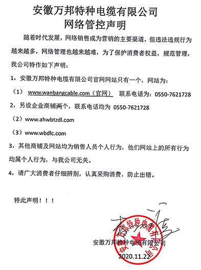 鄭重聲明:安徽萬邦特種電纜有限公司官方網站為:www_wanbangcable_com.fuliapr.cn,除此之外無任何子網站或合作網站,其余均為假冒偽劣。電話:0550-7621728 13485756353 地 址:安徽省天長市滁州高新技術產業開發區經四路29號